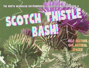 The North Okanagan Scotch Thistle Bash is a coordinated, region-wide effort to control Scotch thistle (Onopordum acanthium), an invasive plant that spreads aggressively and can dominate grasslands, trailsides, and agricultural edges. During Earth Week 2026, community groups, partner organizations, and local volunteers will host multiple “bashes” across the North Okanagan to remove plants, prevent seed spread, and record locations for long-term management.